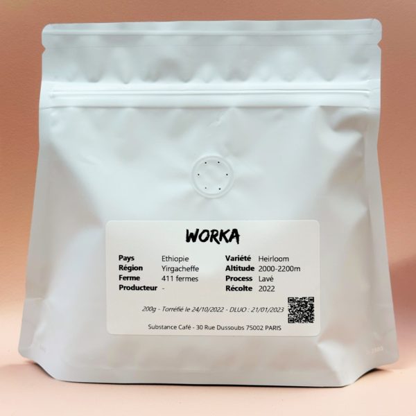 Whole beans from Worka in the Yirgacheffe region, washed heirloom.