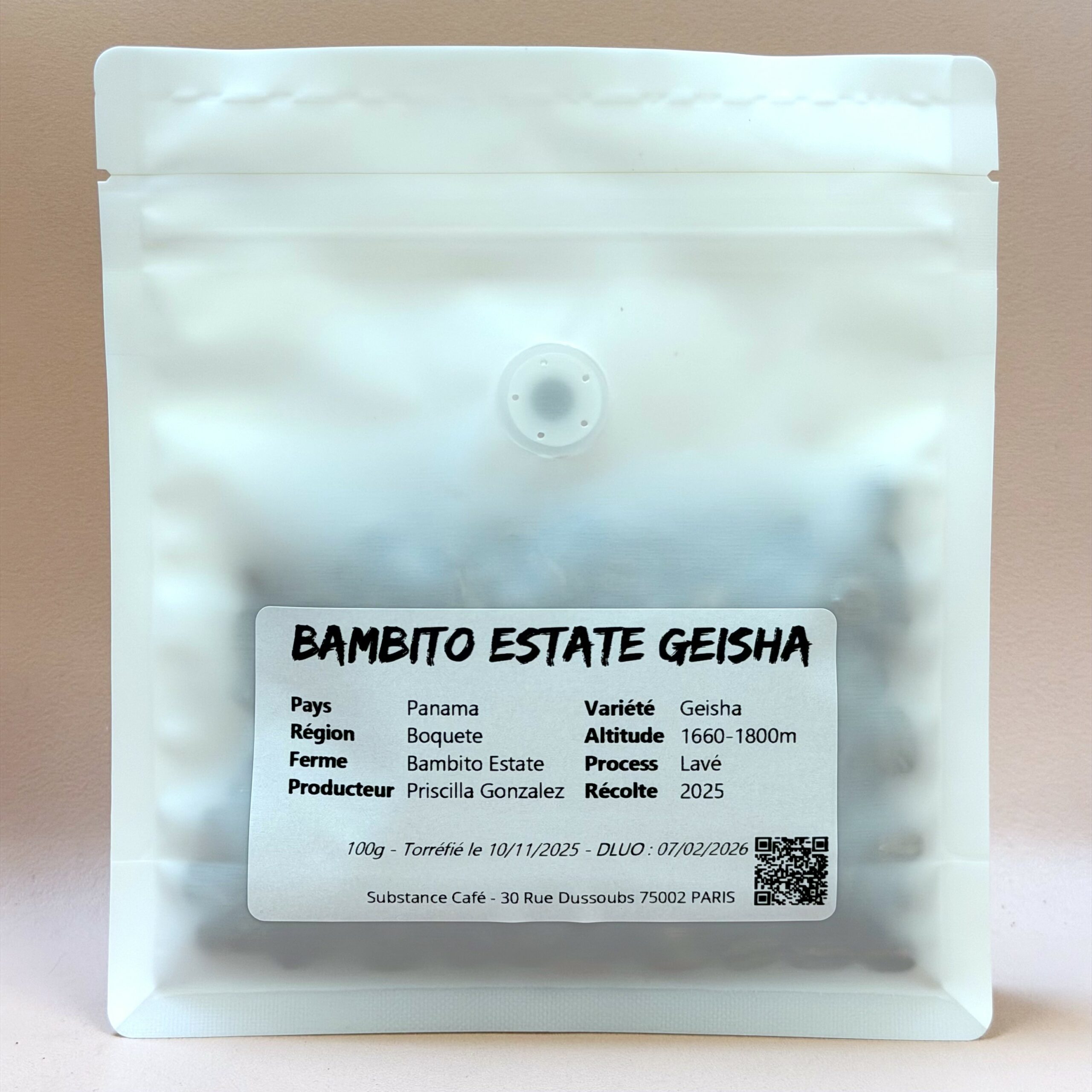 Whole beans from the farm Bambito in the region of Boquete in Panama. It is a washed processed geisha.
