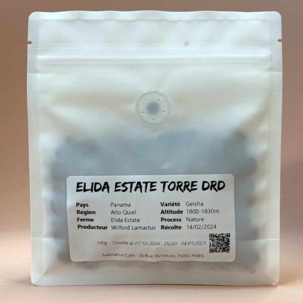 Whole beans from the farm Elida Estate from Lamastus family Estate, in Panama. It is a geisha washed process from the plot called Torre. This lot made Lamastus family won several times the Best of Panama. DRD means it is “Dark Room Dried” (see pictures below). This drying method is reserved for the best lots of Lamastus.